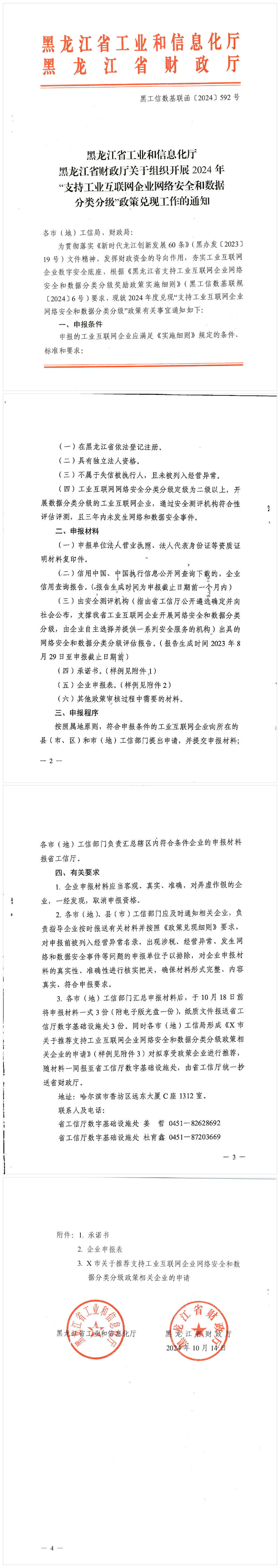 关于组织开展2024年“支持工业互联网企业网络安全和数据安全分类分级”政策兑现工作的通知