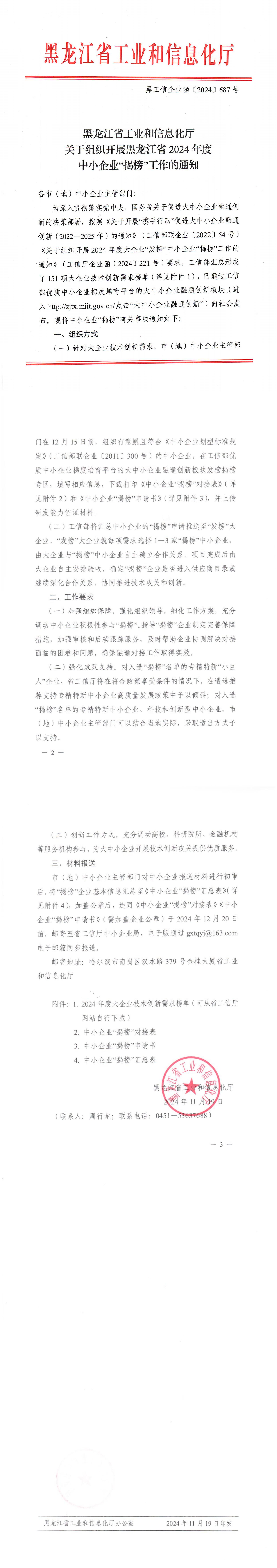 关于组织开展黑龙江省2024年度中小企业“揭榜”工作的通知